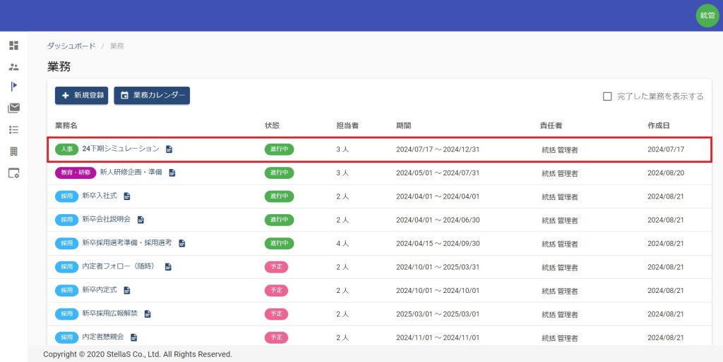 (1)[業務管理]→[業務]→タスクを登録したい業務を選択します。