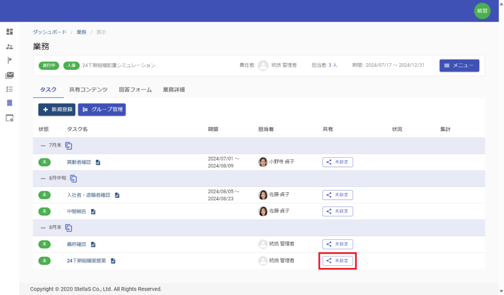 (4)タスクを共有する場合は、[未設定]をクリックします。
