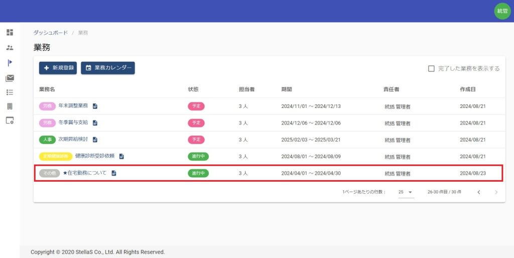 (1)[業務管理]→[業務]→アンケート作成したい業務を選択します。