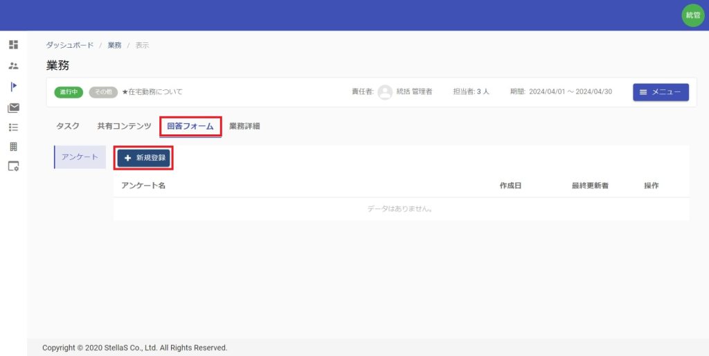 (2)[回答フォーム]タブをクリックし、[+新規登録]をクリックします。
