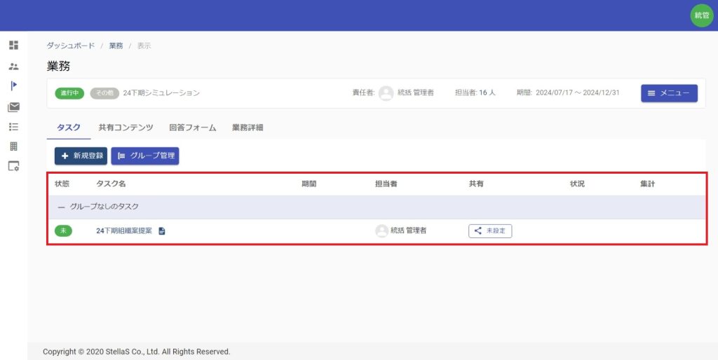 事前に①社員②業務③タスクの3つの登録が必要となります。