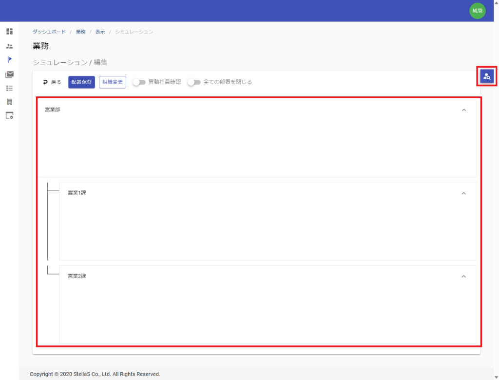 1.「組織」と「人員配置」のシミュレーションが可能です。